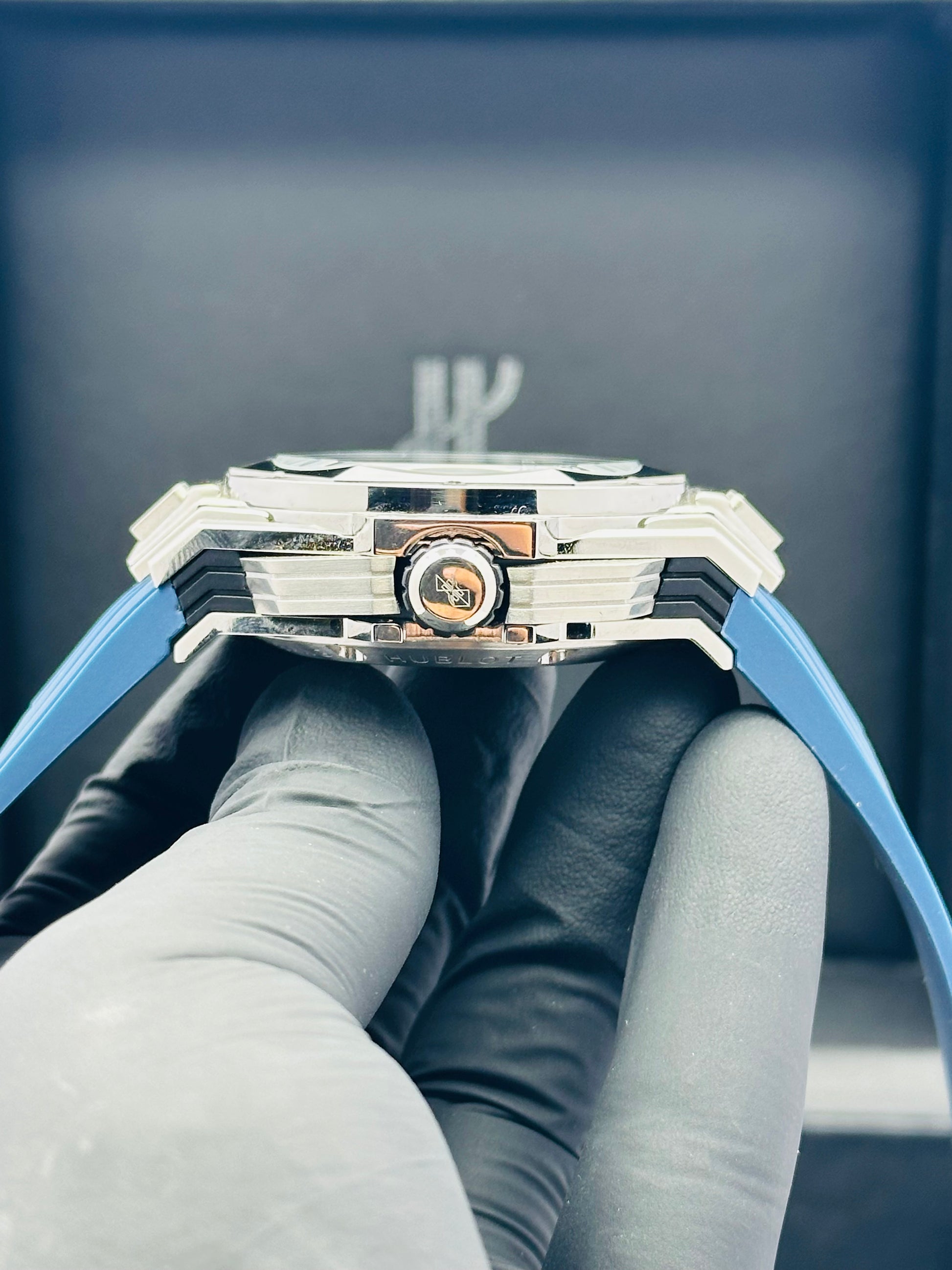HUBLOT BIG BANG SANG BLEU II BLUE WITH SILVER COMBO QUARTZ WITH STOPWATCH FUNCTION